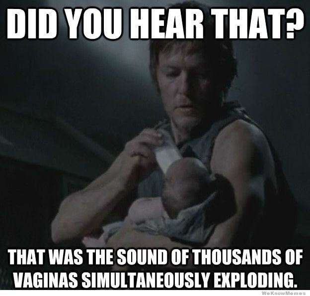 Who doesn't love a bad boy with a heart of gold? I'm SO happy with the person he became once his brother was gone. He completely changed, and all for the better. Did anyone else's ovaries explode when he held Judith for the first time? Mine sure did. That man is pure sex appeal, and but a baby in his arms? Where is my drool cup? He's not in the comic so I go into every episode terrified that THIS is the episode that they end him. According to an interview with him, he always flips to the back of the script when he gets it to make sure of that too. (They are SUPER secretive about the scripts, the actors don't get them until they show up to start shooting! No leaks from their end.) I could ramble on and on about him, but my brain is pretty fried at the moment so I'll leave you with this picture instead. NOM NOM NOM.